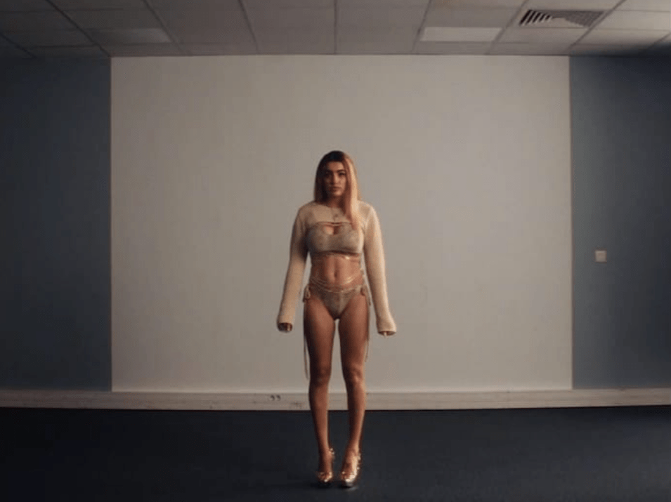 Dans toute sa frontalité, la mise en scène de l’épisode du casting dans Diamant Brut dénonce bien ce mécanisme. Liane se tient debout, de face, dans un décor clinique. Elle porte un bikini très échancré ainsi qu’une sorte de boléro en mailles coupé au-dessus de son décolleté. Raide, les pieds légèrement rentrés vers l’intérieur dans un réflexe d’auto-protection, elle cache ses mains sous ses manches ultra-longues : elle est bien là pour se vendre en partie, mais pas toute entière. Sur un ton faussement complice, Alexandra Ferrer, la directrice du casting, lui suggère de ne pas faire sa « sainte-nitouche » : elle aurait tout intérêt à se montrer sensuelle, à séduire les hommes sur le tournage de l’émission pour faire monter sa cote sur le net. L’axe de la caméra reste le même pendant toute la scène, simplement accompagnée d’un lent travelling avant, sournois, implacable. Alexandra Ferrer (qui n’intervient ailleurs dans le film que par le biais du répondeur téléphonique de Liane) demeure donc hors-champ, en lieu et place du point de vue qui génère cette image glaçante. Sa voix suave, mais ainsi dépersonnalisée, devient le symbole de tout un appareil de prédation mis en œuvre autour de l’instagrameuse. Le resserrement progressif du cadre autour de celle-ci en traduit le projet : qu’elle se débarrasse des pudeurs intrinsèques à sa personne, qu’elle se gère tout entière comme un agent du marché médiatique gère un produit.